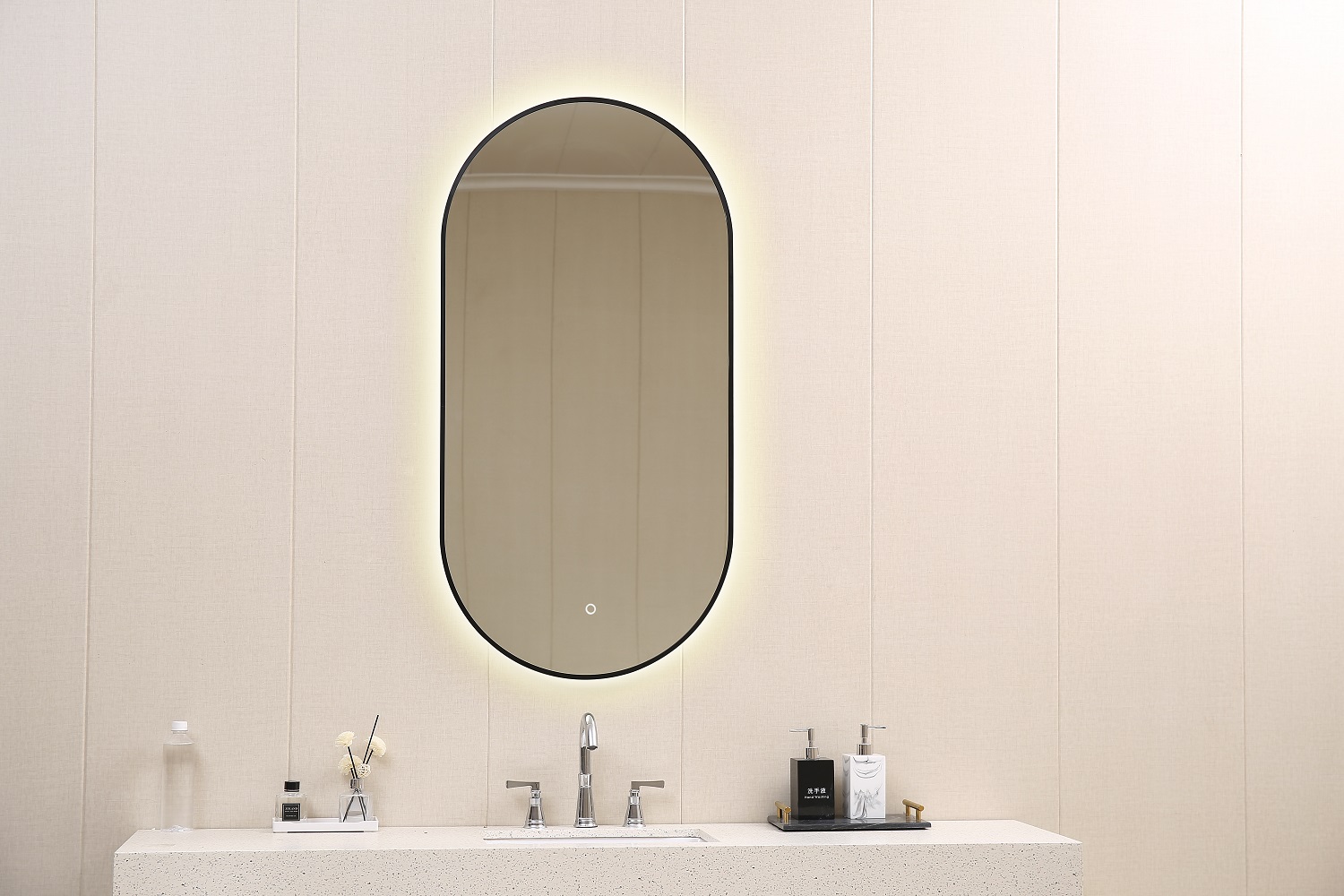 KIMIC OGLEDALO OVALNO 40x90cm MATT CRNI OKVIR touch pozadinska rasvjeta