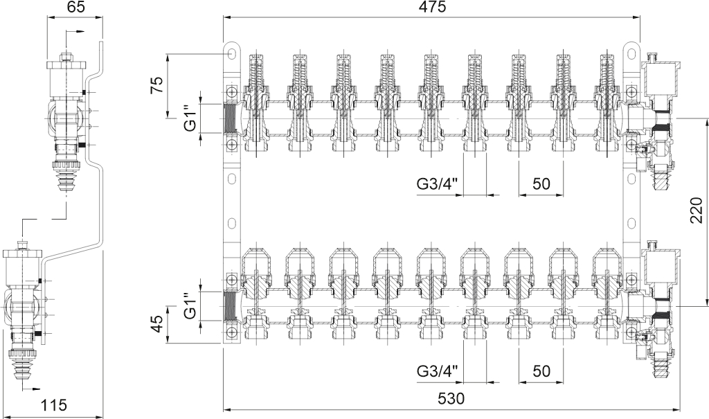 - INOX 304 RAZDJELNIK PODNOG GRIJANJA 9 KRUGOVA